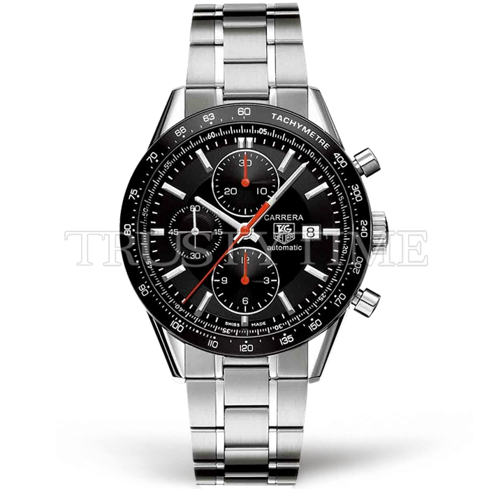 Часы Tag Heuer из коллекции Carrera Calibre 16. Спортивные мужские часы Tag Heuer Carrera Calibre 16 41mm CV2014.BA0786 премиального качества (Артикул магазина: TG-0605) оснащены надежным автоматическим механизмом с автоподзаводом (работает от амплитуды движения руки) калибра Valjoux-7750, в котором реализованы следующие функции: часовая, минутная и секундная стрелки, а так же хронограф, дата. Круглый корпус часов стального цвета, имеющий размер 41 мм и высоту 16 мм превосходно дополнит образ и украсит запястье своего обладателя. Для изготовления часов Tag Heuer Carrera Calibre 16 41mm CV2014.BA0786 предлагаемых в нашем интернет-магазине, применяются нержавеющая сталь 316L высокого качества (Швейцарский стандарт), а так же сапфировое стекло высокой прочности, благодаря чему обеспечивается максимальная защита от сколов и механических повреждений. Отличительной чертой данной модели является черный циферблат, часовые индексы которого обеспечивают часовые метки. Завершает образ браслет из нержавеющей стали стального цвета с фирменной раскладывающейся застежкой Tag Heuer. Водонепроницаемость данной модели составляет 30М (WR30) – допускается минимальное воздействие с водой.