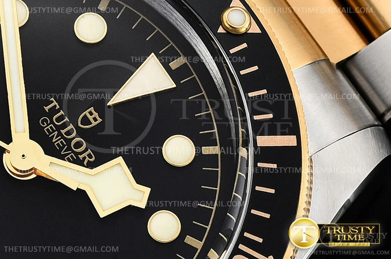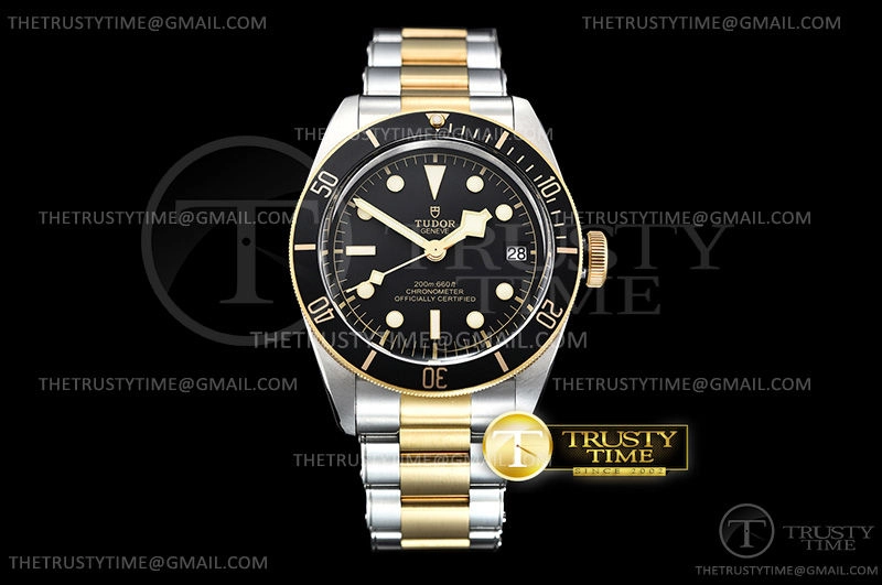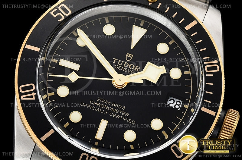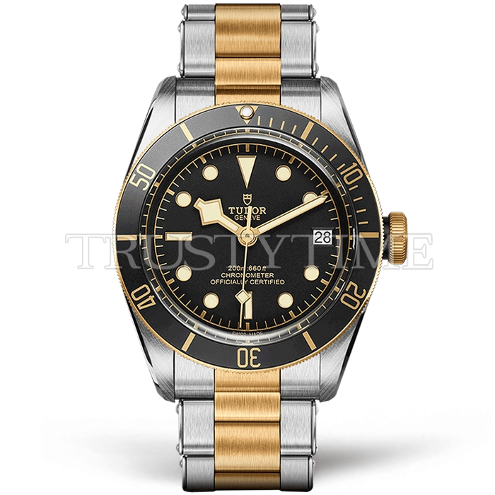 Часы Tudor из коллекции Heritage. Классические мужские часы Tudor Heritage Black Bay Black S&G 41mm M79733N-0002 премиального качества (Артикул магазина: TD-0769) оснащены надежным автоматическим механизмом с автоподзаводом (работает от амплитуды движения руки) калибра ETA2824-2, в котором реализованы следующие функции: часовая, минутная и секундная стрелки, а так же дата. Круглый корпус часов комбинированного сталь с желтого золота цвета, имеющий размер 41 мм и высоту 14.8 мм превосходно дополнит образ и украсит запястье своего обладателя. Для изготовления часов Tudor Heritage Black Bay Black S&G 41mm M79733N-0002 предлагаемых в нашем интернет-магазине, применяются нержавеющая сталь 316L высокого качества (Швейцарский стандарт), а так же сапфировое стекло высокой прочности, благодаря чему обеспечивается максимальная защита от сколов и механических повреждений. Отличительной чертой данной модели является черный циферблат, часовые индексы которого обеспечивают часовые метки. Завершает образ браслет из нержавеющей стали комбинированного сталь с желтым золотом цвета с фирменной раскладывающейся застежкой Tudor. Водонепроницаемость данной модели составляет 30М (WR30) – допускается минимальное воздействие с водой.