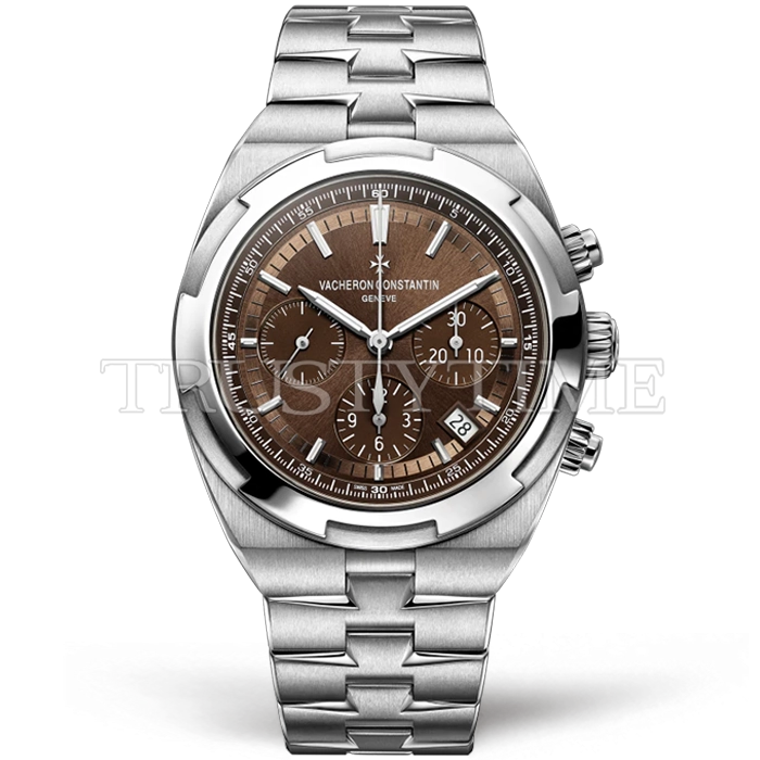 Часы Vacheron Constantin из коллекции Overseas Chronograph. Спортивные мужские часы Vacheron Constantin Overseas Chronograph 42mm 5500V/110A-B147 премиального качества (Артикул магазина: VC-0184) оснащены надежным автоматическим механизмом с автоподзаводом (работает от амплитуды движения руки) калибра 5200, в котором реализованы следующие функции: часовая, минутная и секундная стрелки, а так же хронограф, дата. Круглый корпус часов стального цвета, имеющий размер 42.5 мм и высоту 15 мм превосходно дополнит образ и украсит запястье своего обладателя. Для изготовления часов Vacheron Constantin Overseas Chronograph 42mm 5500V/110A-B147 предлагаемых в нашем интернет-магазине, применяются нержавеющая сталь 316L высокого качества (Швейцарский стандарт), а так же сапфировое стекло высокой прочности, благодаря чему обеспечивается максимальная защита от сколов и механических повреждений. Отличительной чертой данной модели является коричневый циферблат, часовые индексы которого обеспечивают часовые метки. Завершает образ браслет из нержавеющей стали стального цвета с фирменной раскладывающейся застежкой Vacheron Constantin. Водонепроницаемость данной модели составляет 30М (WR30) – допускается минимальное воздействие с водой.