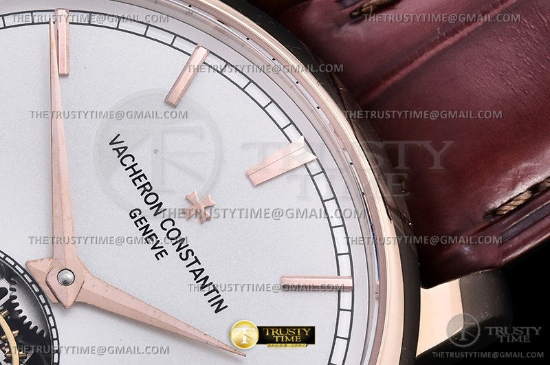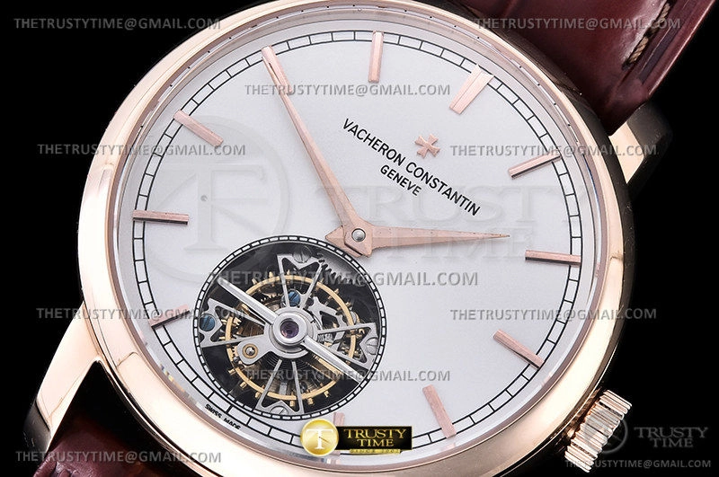 Часы Vacheron Constantin из коллекции Traditionnelle Tourbillon. Классические мужские часы Vacheron Constantin Traditionnelle Tourbillon 41mm 6000T/000R-B346 премиального качества (Артикул магазина: VC-0278) оснащены надежным автоматическим механизмом с ручным заводом калибра Seagull Handwind Tourbillon, в котором реализованы следующие функции: часова и минутка стрелки, а так же турбийон. Круглый корпус часов розового цвета, имеющий размер 41 мм и высоту 13 мм превосходно дополнит образ и украсит запястье своего обладателя. Для изготовления часов Vacheron Constantin Traditionnelle Tourbillon 41mm 6000T/000R-B346 предлагаемых в нашем интернет-магазине, применяются нержавеющая сталь 316L высокого качества (Швейцарский стандарт), а так же сапфировое стекло высокой прочности, благодаря чему обеспечивается максимальная защита от сколов и механических повреждений. Отличительной чертой данной модели является белый циферблат, часовые индексы которого обеспечивают часовые метки. Завершает образ кожаный ремешок коричневого цвета с фирменной раскладывающейся застежкой Vacheron Constantin. Водонепроницаемость данной модели составляет 30М (WR30) – допускается минимальное воздействие с водой.