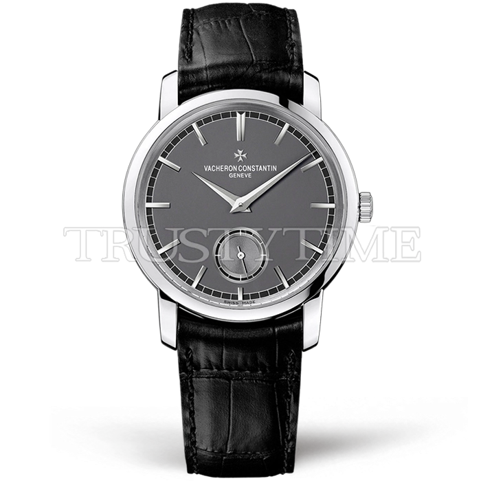 Часы Vacheron Constantin из коллекции Traditionnelle. Классические мужские часы Vacheron Constantin Traditionnelle Small Seconds 38mm 82172/000P-9811 премиального качества (Артикул магазина: VC-0397) оснащены надежным автоматическим механизмом с автоподзаводом (работает от амплитуды движения руки) калибра MY9015, в котором реализованы следующие функции: часовая, минутная и секундная стрелки, а так же максимально простой функционал без усложнений. Круглый корпус часов стального цвета, имеющий размер 38 мм и высоту 7.9 мм превосходно дополнит образ и украсит запястье своего обладателя. Для изготовления часов Vacheron Constantin Traditionnelle Small Seconds 38mm 82172/000P-9811 предлагаемых в нашем интернет-магазине, применяются нержавеющая сталь 316L высокого качества (Швейцарский стандарт), а так же сапфировое стекло высокой прочности, благодаря чему обеспечивается максимальная защита от сколов и механических повреждений. Отличительной чертой данной модели является серый циферблат, часовые индексы которого обеспечивают часовые метки. Завершает образ кожаный ремешок черного цвета с фирменной классической застежкой Vacheron Constantin. Водонепроницаемость данной модели составляет 30М (WR30) – допускается минимальное воздействие с водой.
